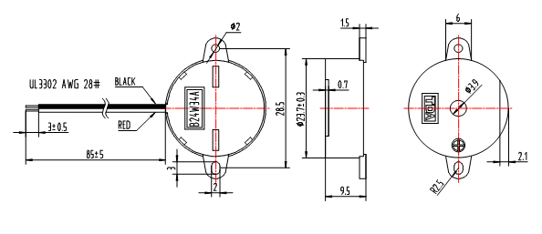 | 4 | 輸出音壓(dB)10cm | Min.100dB, at 12VDC |